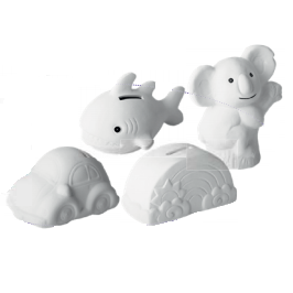 DIY White Ceramic Coin Bank, our coin banks come in a variety of shapes to suit different preferences and styles. Each piggy bank comes with six vibrant paints and a paintbrush, so customers can be as creative as they like and personalize their own piggy bank with their favorite colors and designs.